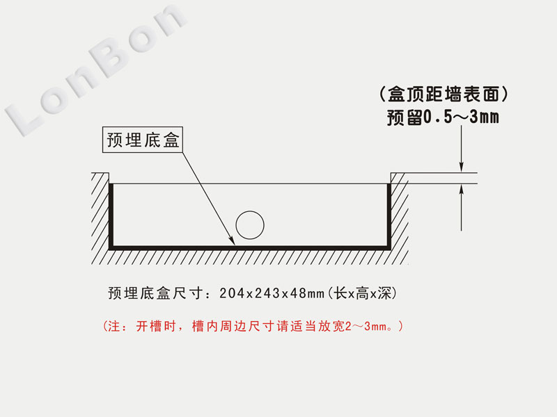 安装铁底盒预埋墙面尺寸图。