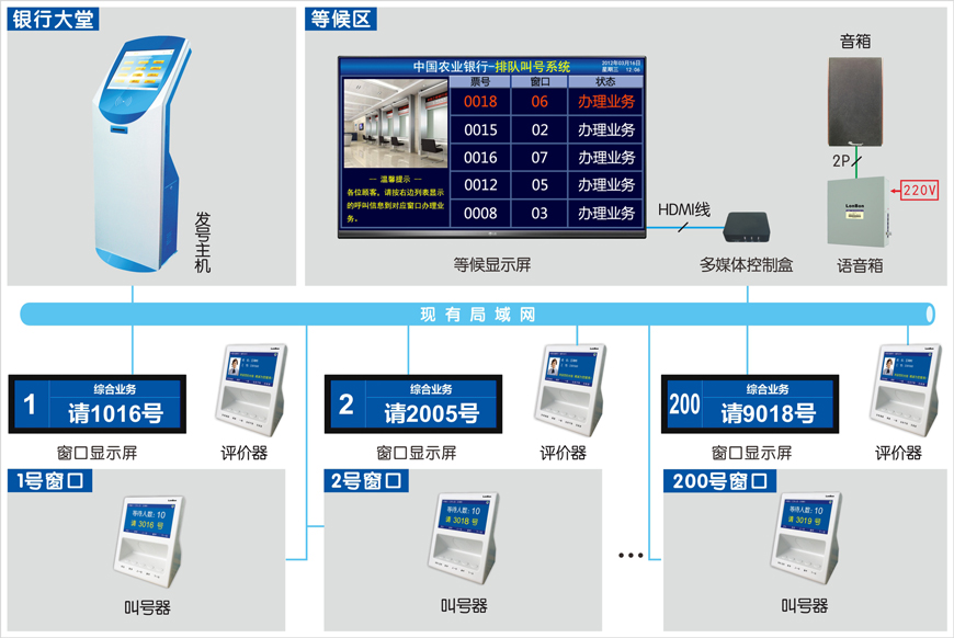 可提供120个业务办理队列,支持200个业务办理窗口。