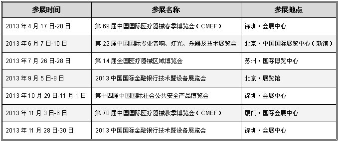 来邦2013年度展会行程时间表