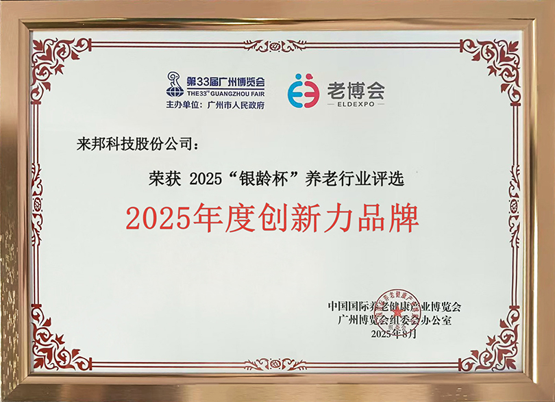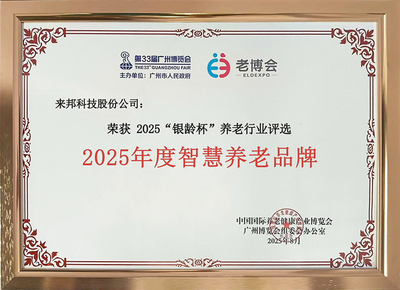 此届,主办方同期设置了第五届“‘银龄杯’颁奖盛典(颁奖典礼将于2025年8月23日如期举行)。来邦凭借自主核心技术,以及在智慧养老领域的创新和优异突出表现等顺利入围,再度蝉联“2025年度智慧养老品牌”和“2025年度创新力品牌”荣誉称号!